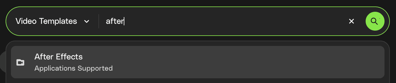 Find the subcategory or filter you need easily, by typing what you need into the Search bar — for instance, if you need an After Effects template within the Video Templates category, start typing After Effects in the search bar, and you’ll be able to select the After Effects filter with one click.